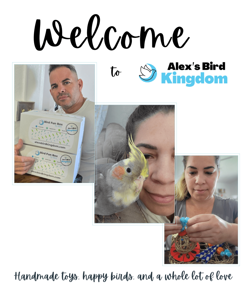 We started Alex’s Bird Kingdom because our own birds needed better, safer, more fun toys, and we figured other bird parents might feel the same.